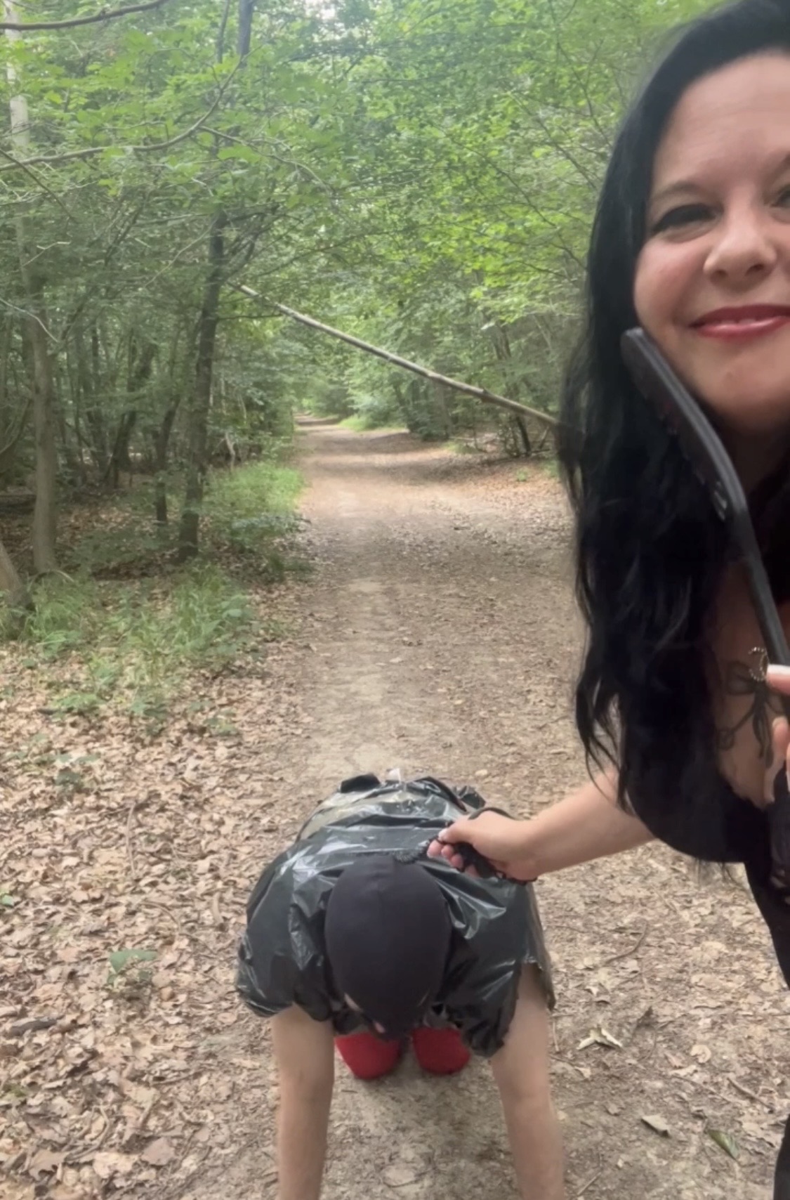 Ma chienne a été désobéissante ces derniers temps, pour lui faire comprendre qu’elle n’a pas agi comme je le voulais, un petit tour en forêt s’impose. Elle va payer, elle va être dégrader, souiller. La terre, elle va manger. J’espère qu’après ce moment, elle a compris qu’il ne faut pas se moquer des ordres et des demandes de maîtresse Clara…