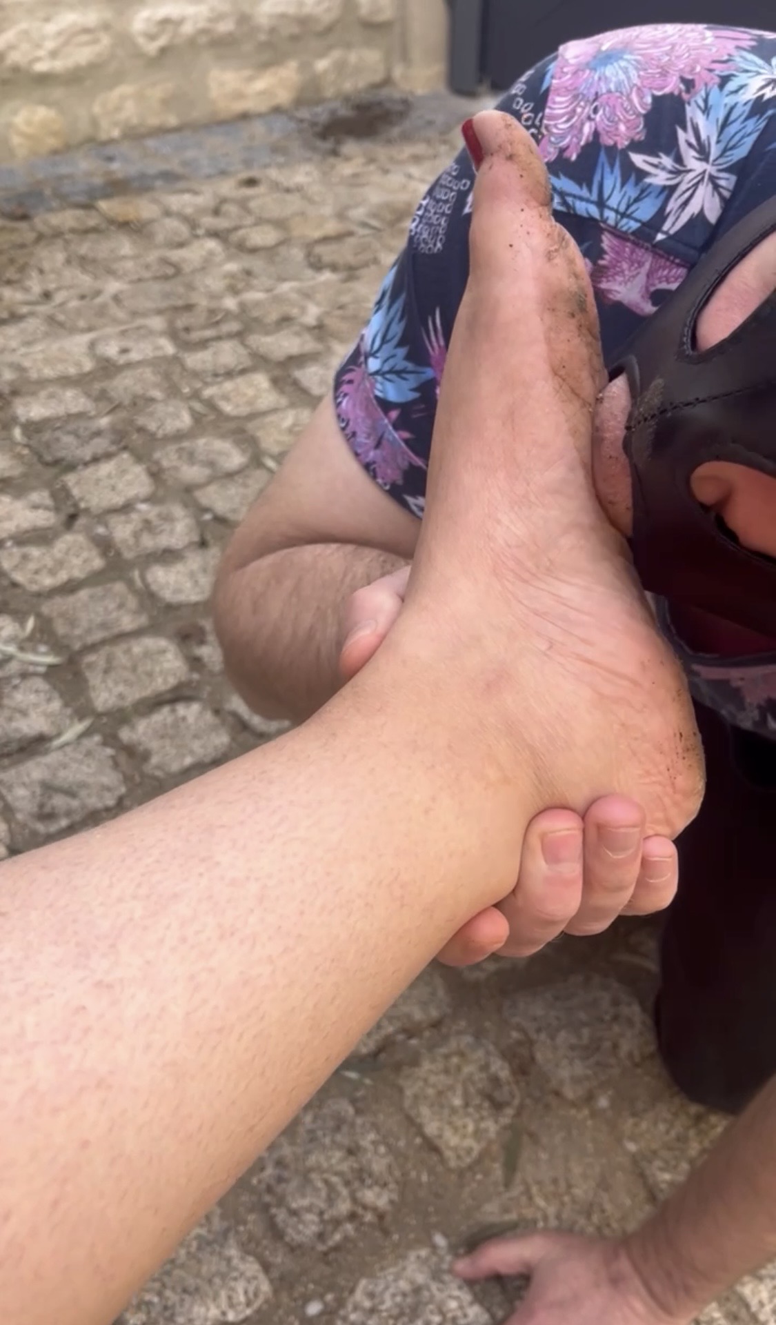 Après avoir marché pieds nus, puis frotter mes pieds sur de la terre, je peux t’assurer que mes pieds sont bien sales. À lui de nettoyer, avec sa langue évidemment. Ensuite il nettoieras la terre qui sera restée sur le sol, un bon nettoyeur ! Serais-tu capable d’être meilleur que lui ?